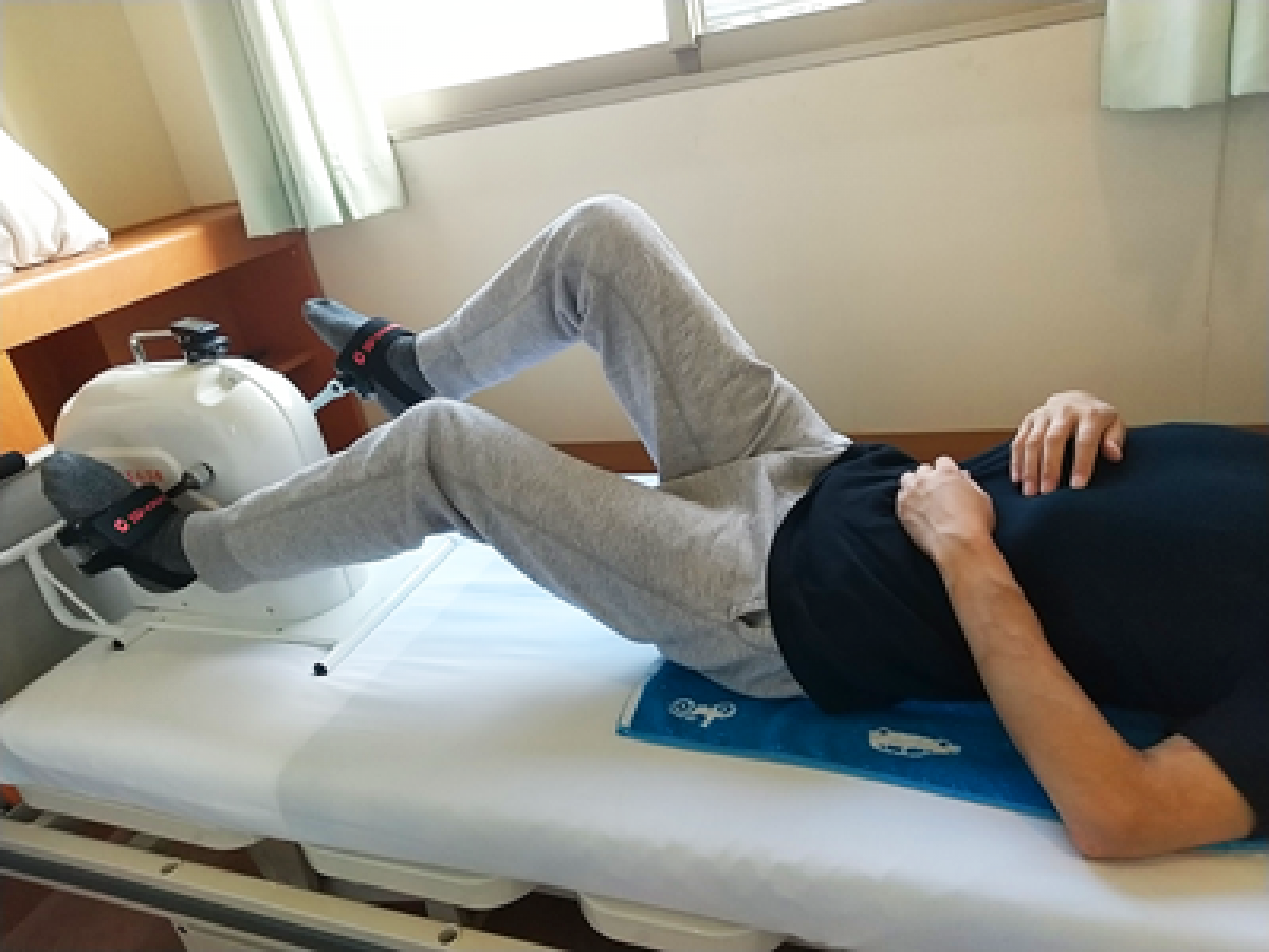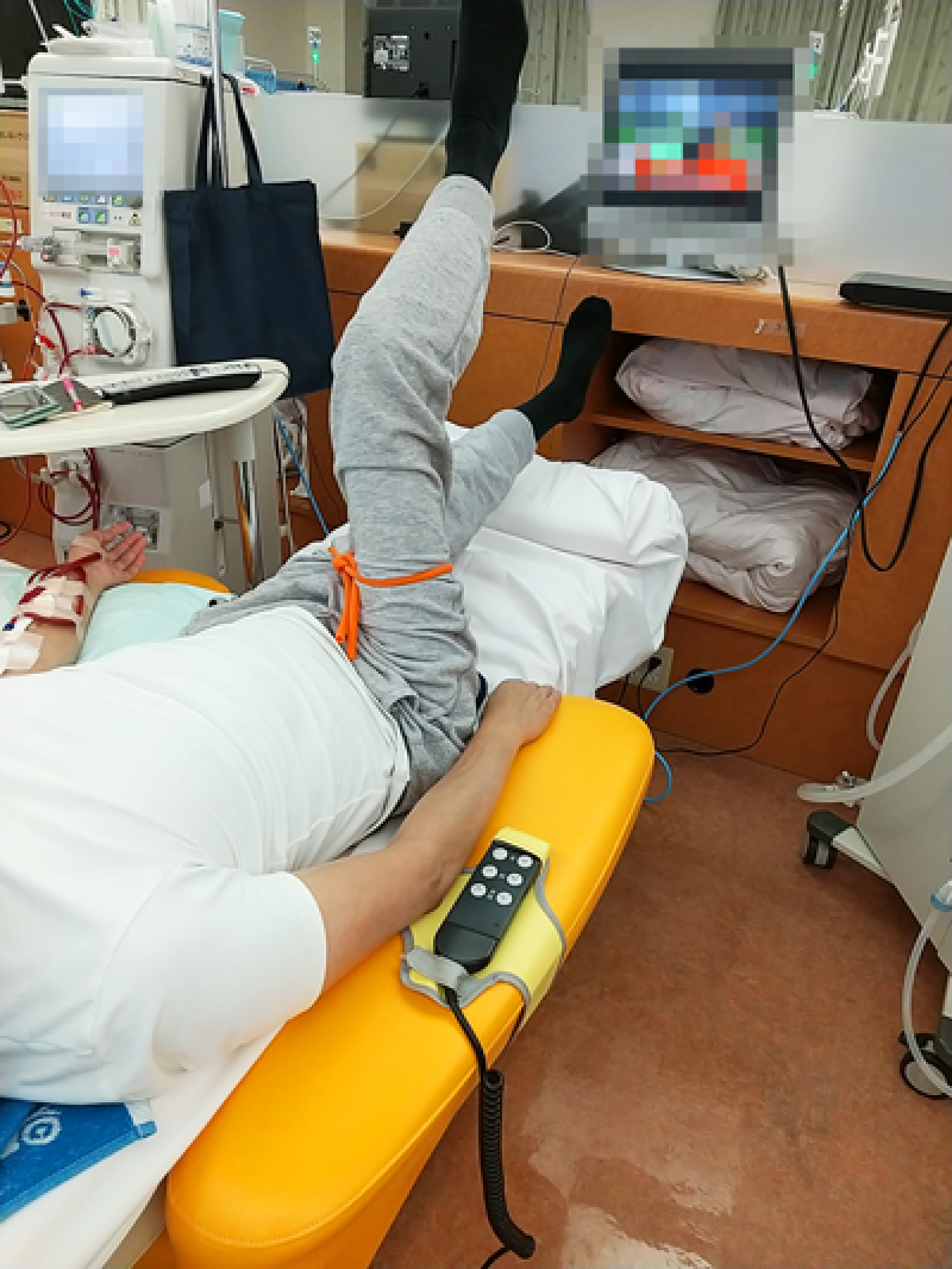 透析患者さんが運動療法を行うことは、心肺機能や栄養の状態、貧血、透析の効率を良くし、不安を和らげ、睡眠の質を改善するなどの効果があります。当クリニックでは、透析中に映像を見ながら、足首の運動やボール・ストレッチバンドによるストレッチ、エルゴメータ―(自転車こぎ)による運動を行っています。