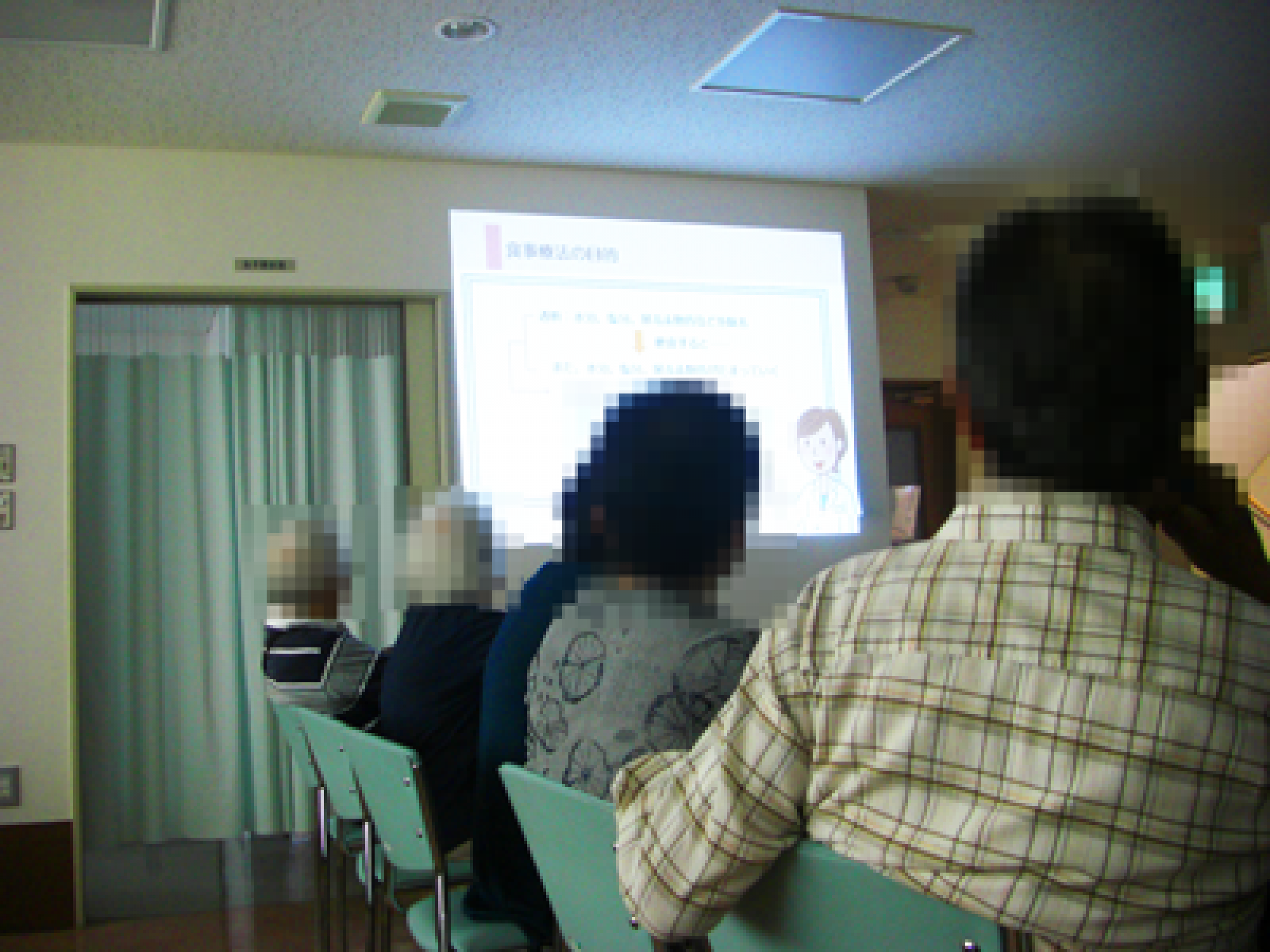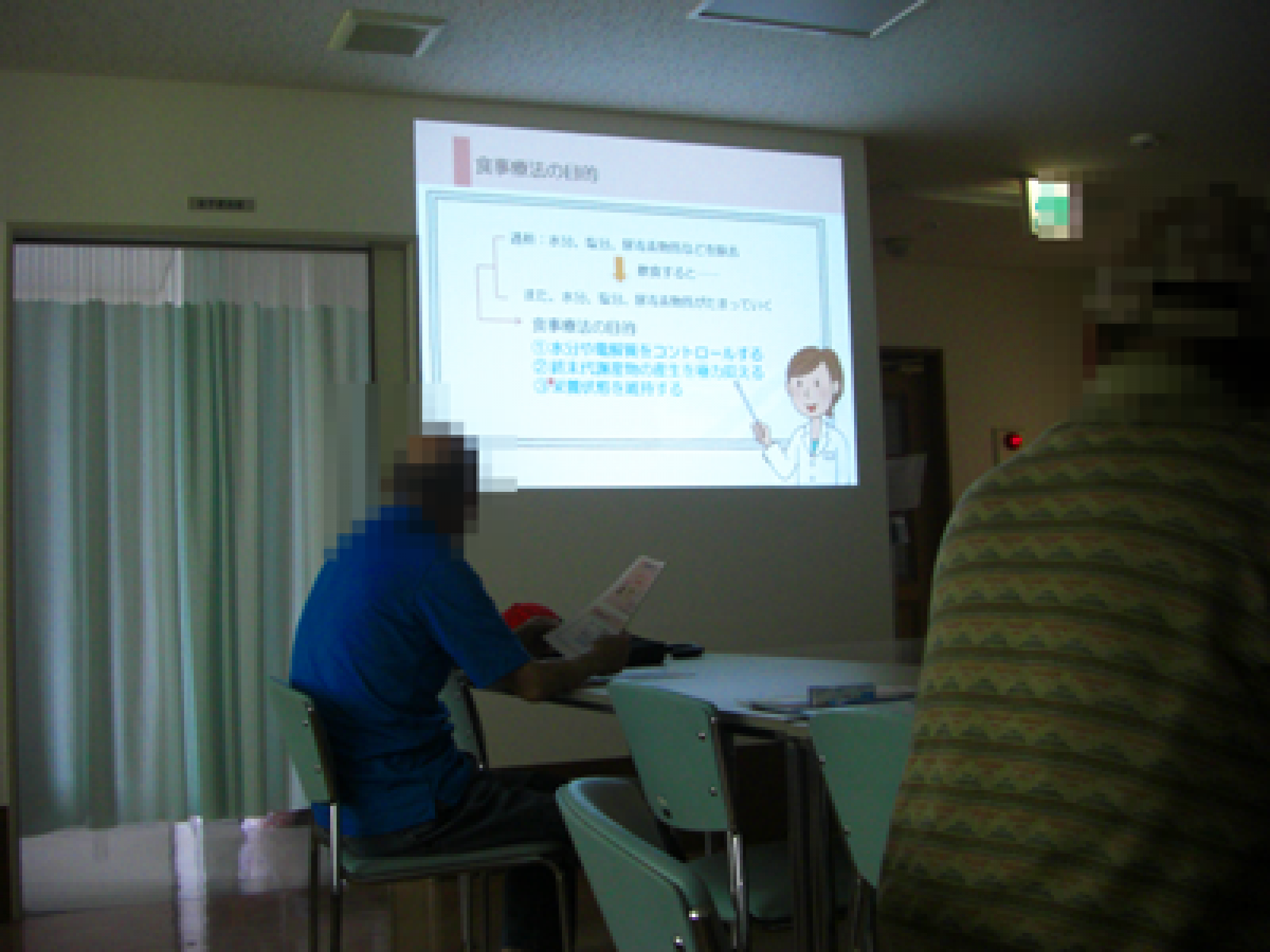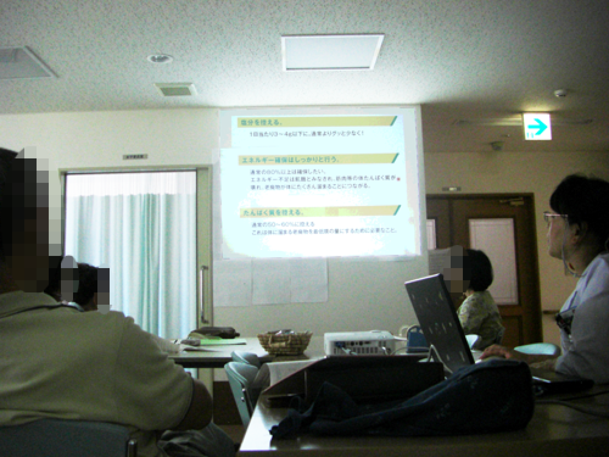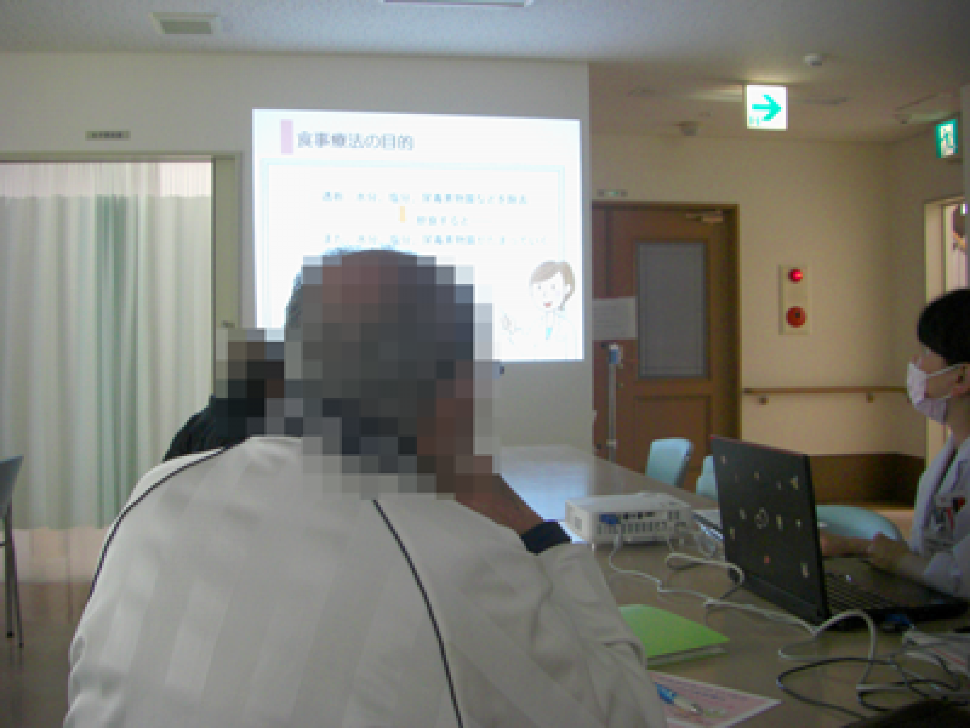 ■当クリニックには管理栄養士が常勤しており,透析患者様から食事や調理法などの疑問を気軽に相談をしていただけるような体制を整えております。また,血液検査データなどを参考に食事・水分コントロールの困難な患者様には個人栄養指導を行っております。さらに,透析患者様向けにテーマを決め,毎月講習会を実施しておりす。