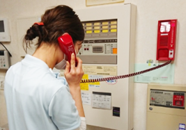 名張消防署のご協力のもと、火災通報装置を使用した名張消防署への通報訓練。