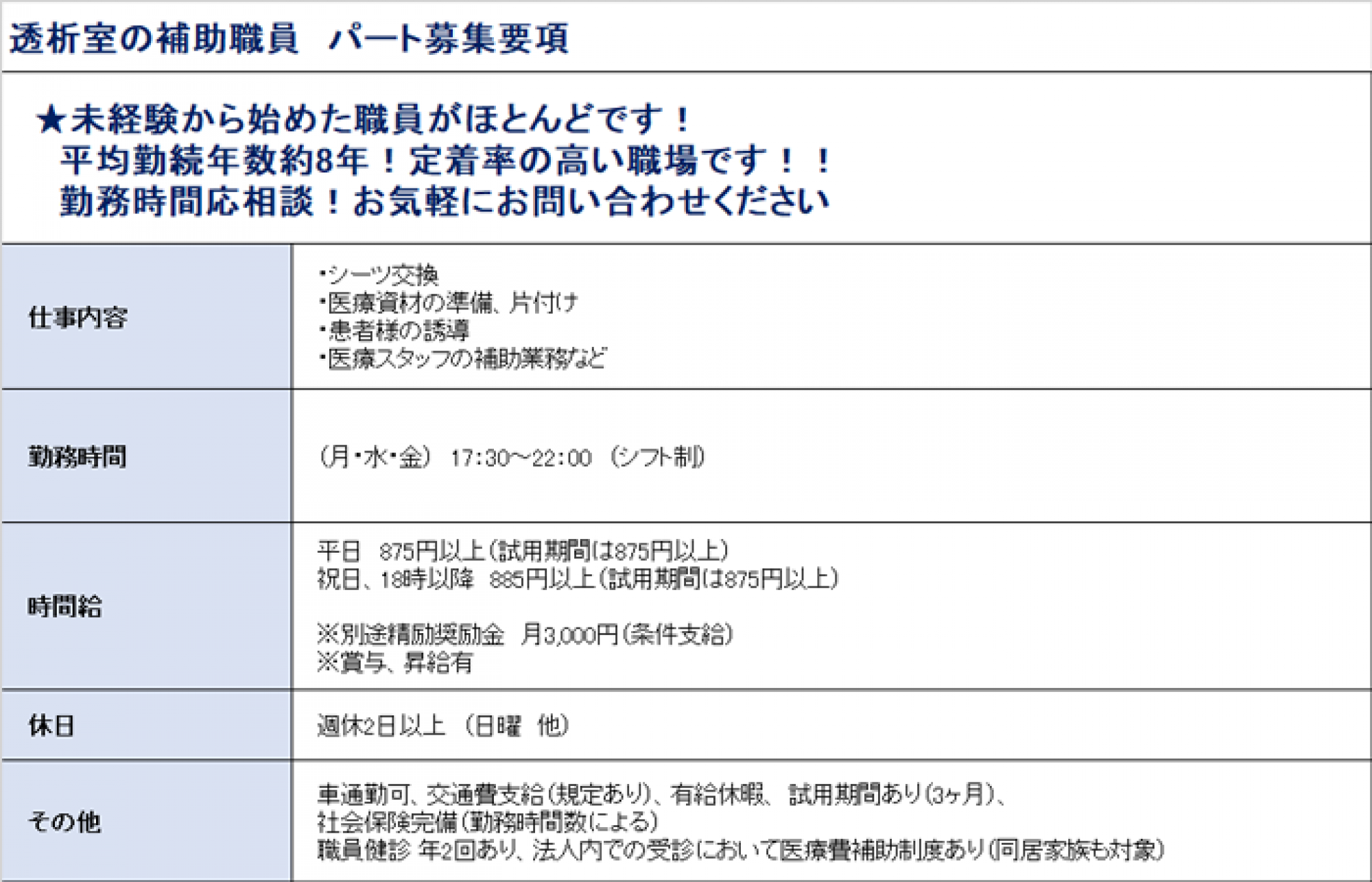 診療科目:内科・泌尿器科(人工透析)・各種検査・健康診断