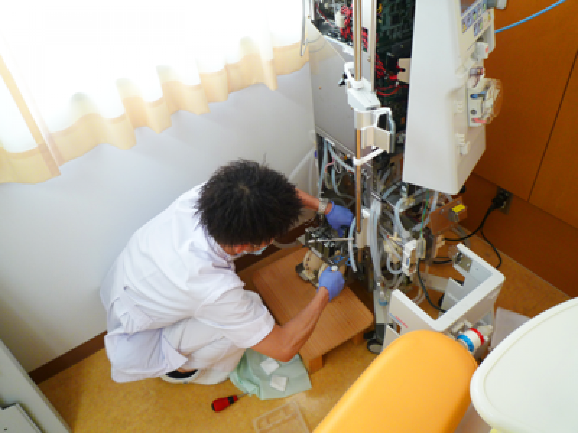安心安全な透析を患者様に提供できるよう、透析機器安全管理委員会を設置し、水質管理計画に基づいた透析液の管理に取り組んでいます。透析液水質基準2016年版をもとに透析液の清浄化を実施しています。また、安全対策として各医療機器等のメンテナンス、定期点検の年間スケジュールを立て計画的に実施しています。